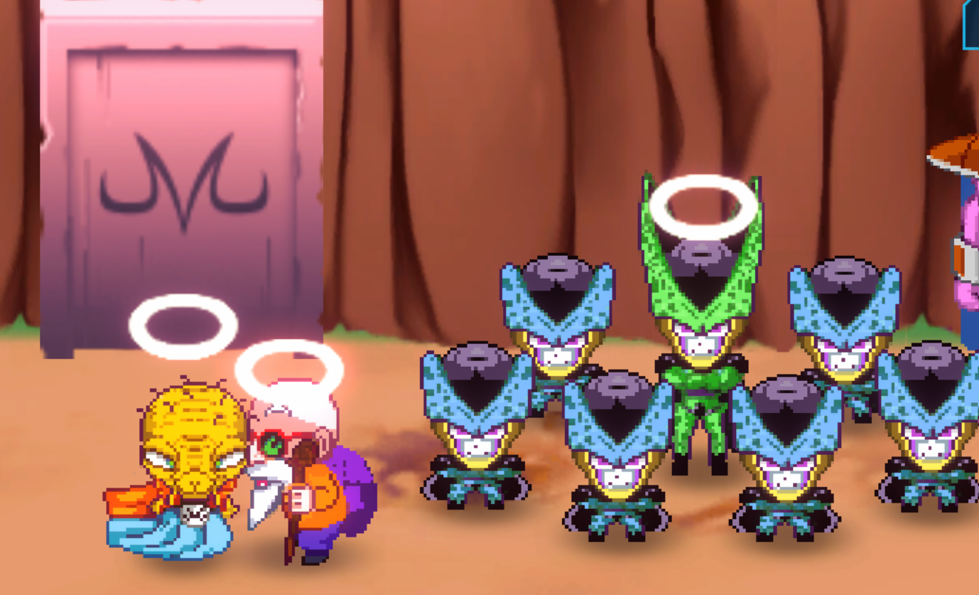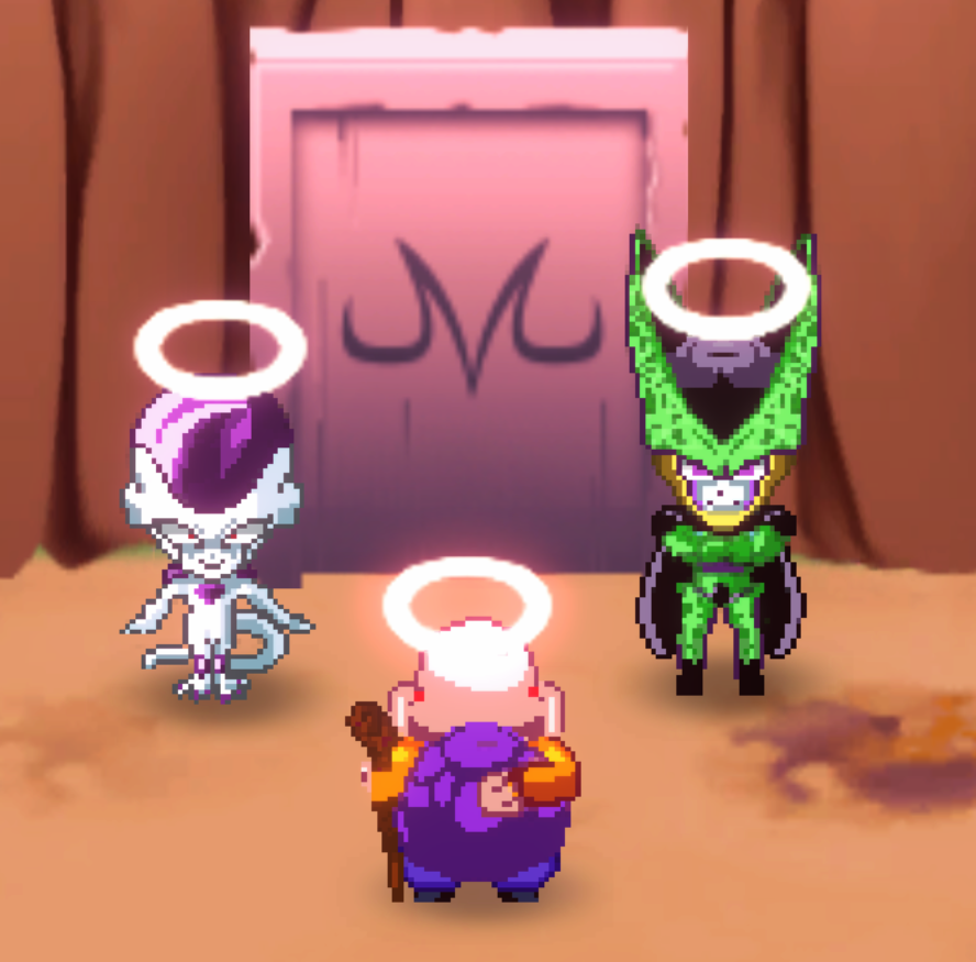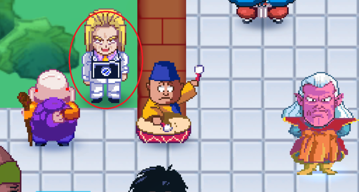 바비디 상징인 M자 문 앞에 있는 프리저와 셀이 퀘스트를 준다.