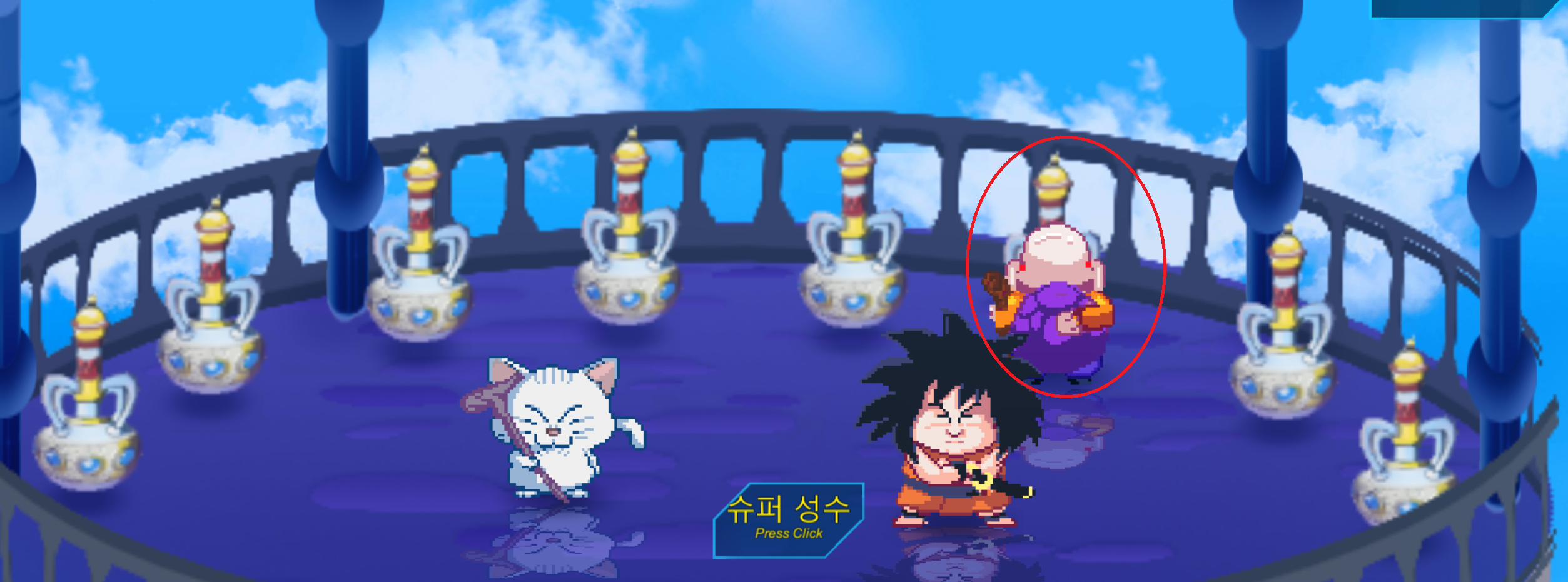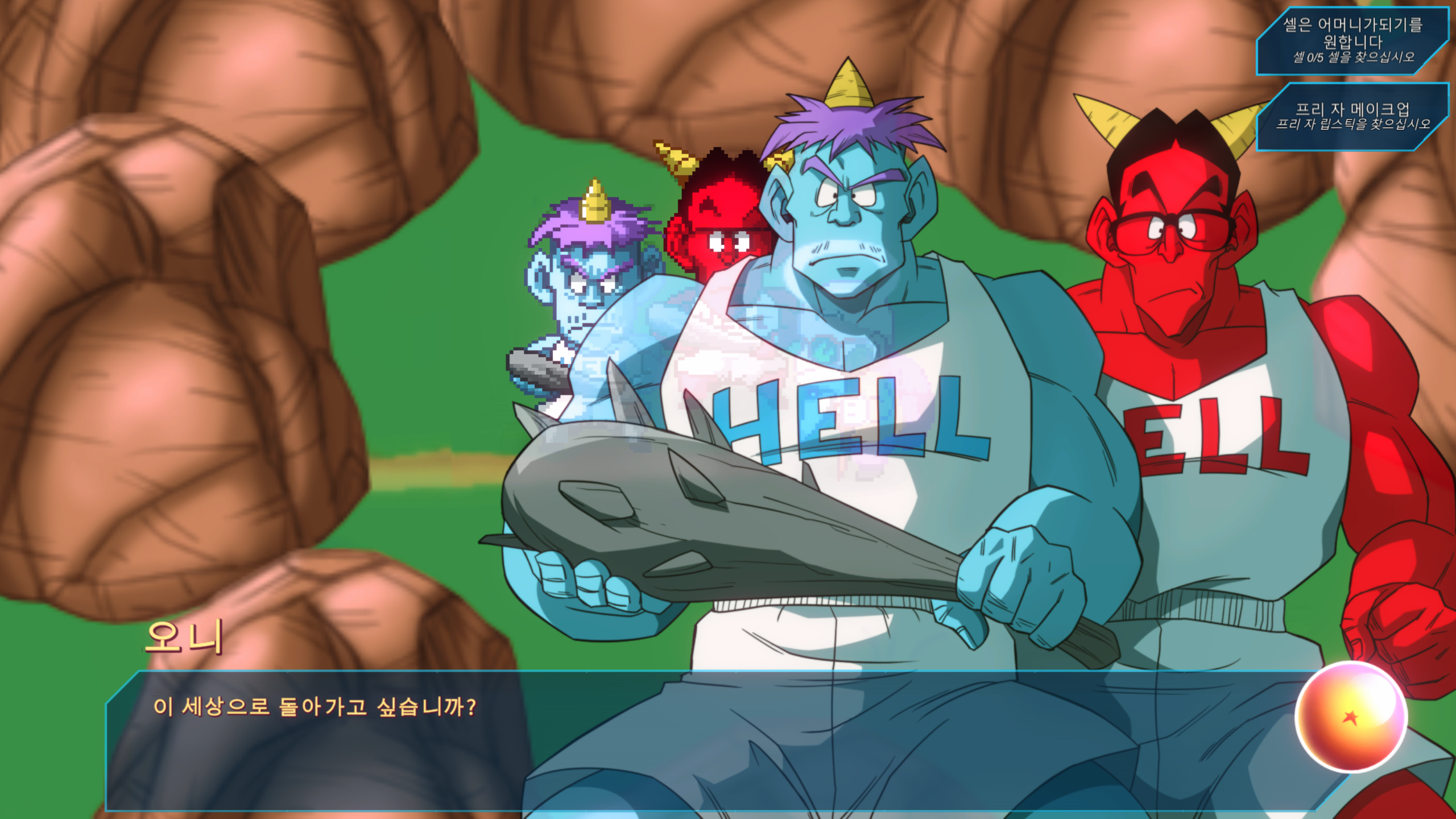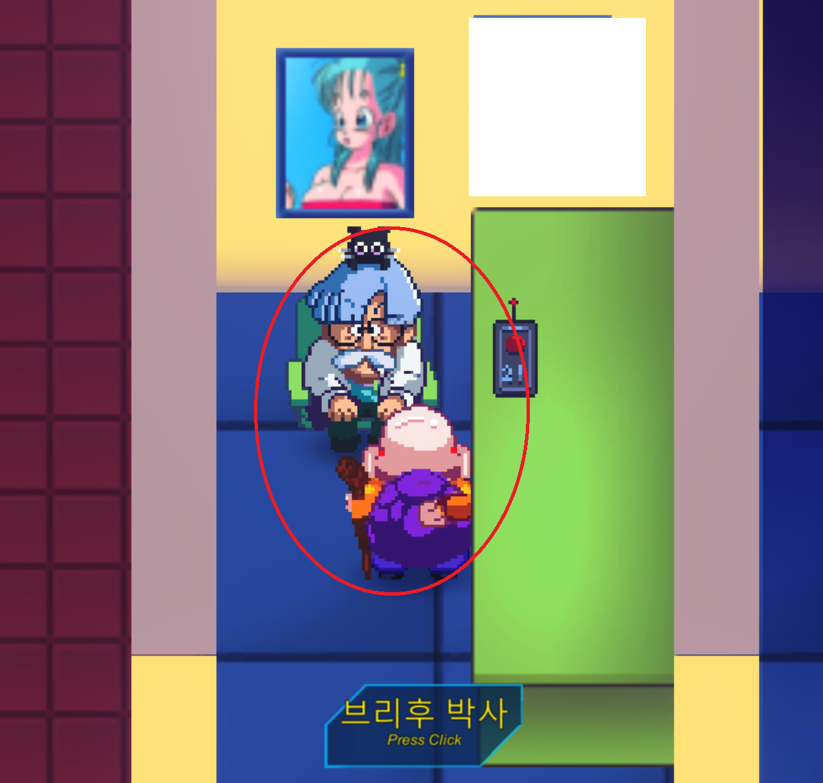 바비디 상징인 M자 문 앞에 있는 프리저와 셀이 퀘스트를 준다.