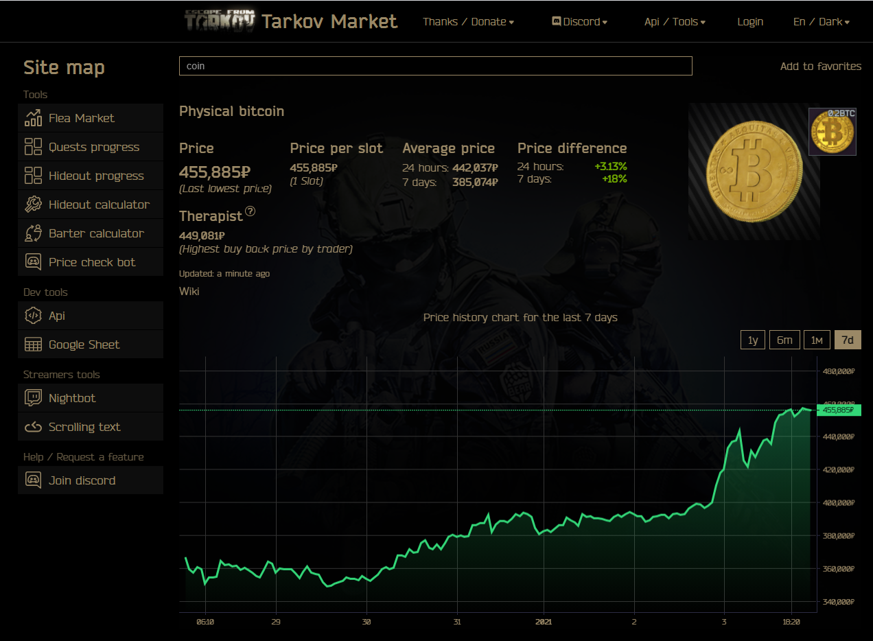바로 "타르코프 마켓(tarkov market) 사이트"입니다.